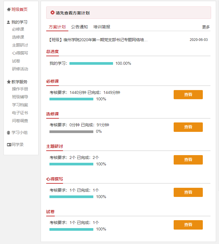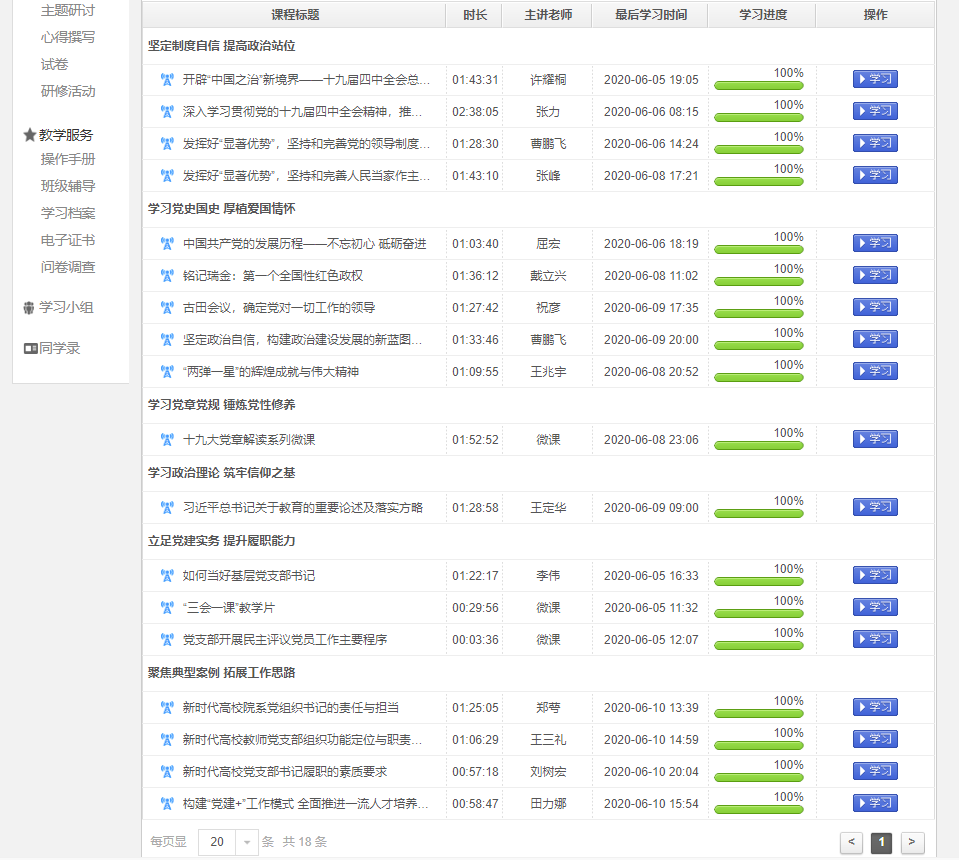 本次培训班管理严格,特色鲜明。系统谋划,提高培训精准度。为增强党员教育培训的针对性、精准度和有效性,党委组织部系统谋划、提前部署,在新冠肺炎疫情防控常态化形势下,依托国家教育行政学院中国教育干部网络学院组织培训,提高了培训的信息化水平。6月8日发布《关于举办2020年第一期党支部书记专题网络培训班的通知》,对培训目的、培训对象、学习方式、培训内容及考核要求等作了明确说明。积极引导基层党支部书记系统学习了习近平新时代中国特色社会主义思想和党的十九届四中全会精神,增强政治自觉、理论自信、情感融入,做到真学真懂真信真用。