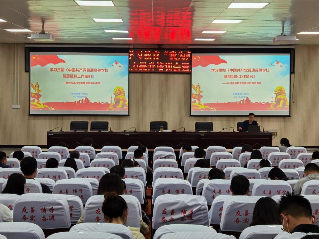 为贯彻落实新时代党的建设总要求和新时代党的组织路线,提升基层党组织建设科学化、规范化水平,不断增强基层党支部的政治功能,提升党支部书记、组织员党务工作能力,5月19日下午,我院举办党史学习教育“我为师生办实事”之党支部书记能力提升培训会暨党务工作论坛。党委组织部部长陈啸吟、副部长张劲松,各二级党组织组织员,二级学院教师党支部书记、学生党支部书记,后勤党支部书记,机关各党支部组织委员或党务工作者参会。