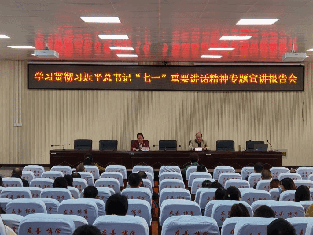 会上,李玉才教授从充分认识习近平总书记“七一”重要讲话的重大的意义、深入领会习近平总书记“七一”重要讲话的主要内容和丰富内涵、着力推动习近平总书记“七一”重要讲话精神走深走实走心等三个层面深入解读了习近平总书记“七一”重要讲话精神,李玉才教授的宣讲,主题鲜明、内容丰富、深入浅出,对习近平总书记“七一”重要讲话提出的一系列新思想新观点新要求进行了全面讲解,精辟阐释了伟大建党精神的丰富内涵,并结合学校实际,简述了为什么学、学什么、怎样学,要求全体党员要把学习成效转化为工作动力和实绩,为全面建成硕士学位授权单位和地方应用型高水平大学做出应有贡献。