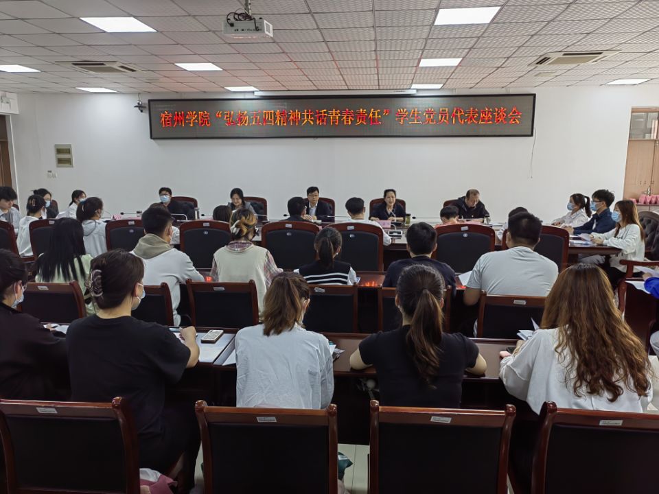 座谈会上,李月云传达学习了习近平总书记在中国人民大学考察时重要讲话精神,凌峰领学了《新时代的中国青年》白皮书的内容,陈啸吟解读了《宿州学院学生党员积分制管理实施办法(试行)》(征求意见稿),与会学生代表对《实施办法》进行了热烈讨论。