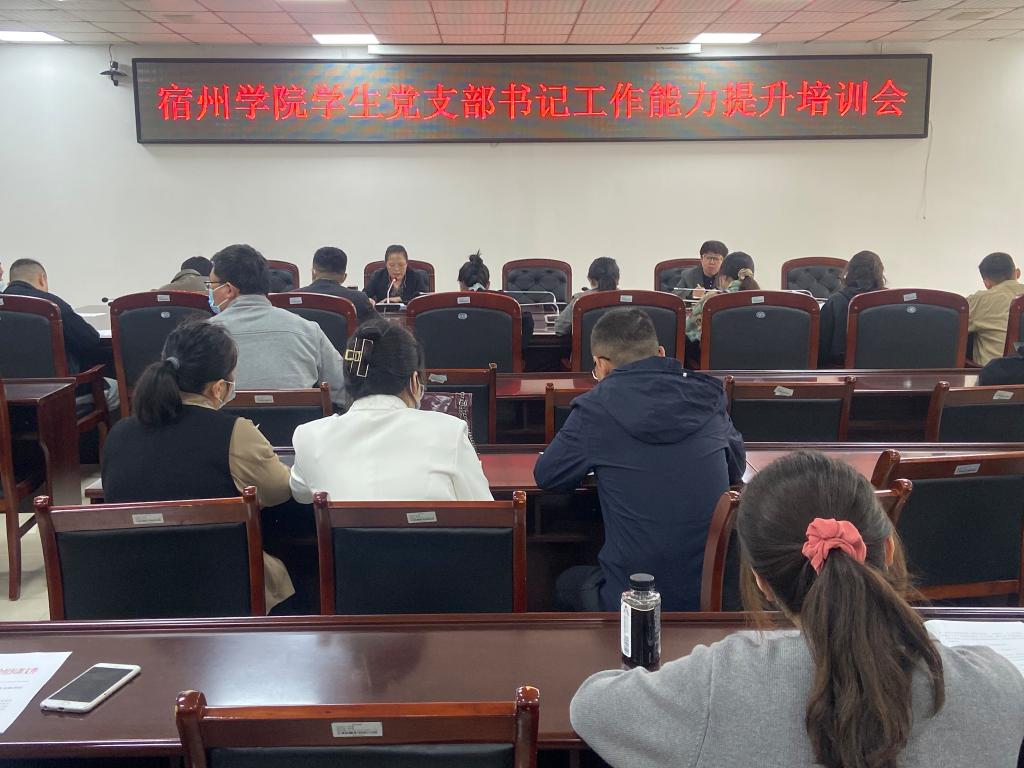 会上,组织部副部长王淑霞带领大家学习了《中国共产党普通高等学校基层组织工作条例》《普通高等学校学生党建工作标准》《安徽省普通高等学校发展党员工作实施细则》《宿州学院发展党员工作分级预警暂行办法(试行)》文件,详细解读了《中国共产党支部工作条例(试行)》《中国共产党党员教育管理工作条例》《中共安徽省委教育工委关于推进省属高校基层组织标准化建设的实施意见》中关于党支部建设的设置、基本任务和主要职责等内容,切实做到教育党员有力、管理党员有力、监督党员有力、组织师生有力、宣传师生有力、凝聚师生有力、服务师生有力等“七个有力”。