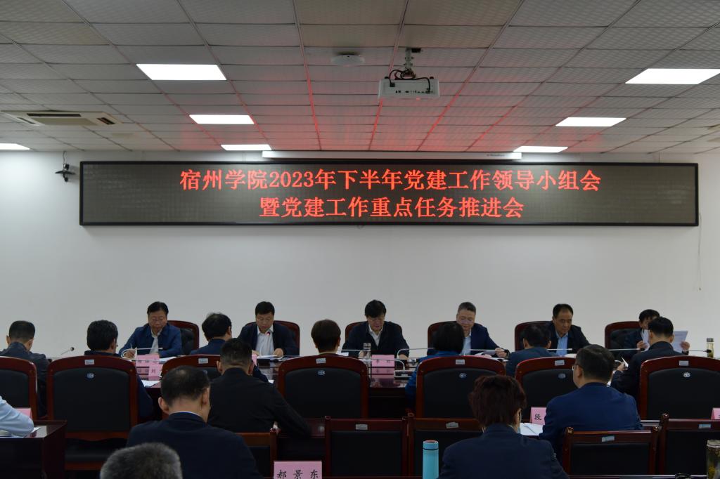 党委副书记、院长李福华领学习近平总书记关于党的建设的重要思想,王俊传达学习了安徽省委教育工委公布的第二批全省高校党建“双创”培育创建单位名单和命名的四星级和五星级党支部的决定,党委组织部部长陈啸吟对《宿州学院关于“全省党建工作示范高校”创建工作的实施方案(审议稿)》进行解读。