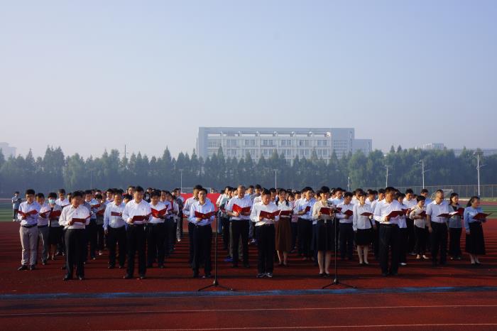 在喜迎中华人民共和国成立72周年之际,为推进党史学习教育与节日活动有机融合,激发师生的爱国之情,报国之志、强国之心,9月30日清晨,学校在东区体育场举行升国旗仪式暨建党百年党史经典诵读主题党日活动。校党委书记汪刘送,党委副书记、校长张莉,党委副书记蔡之让,党委委员、副校长李亮、张英彦、杨维志出席活动。二级学院党政主要负责人、机关党委全体党员及学生代表参加本次活动。